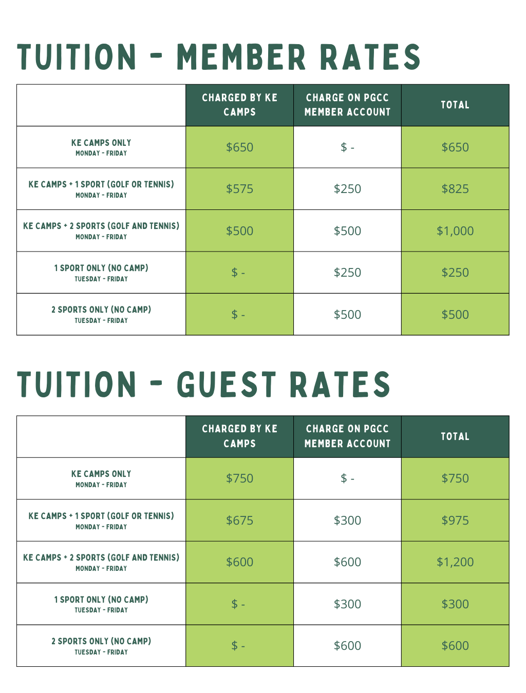 *Campers signed up for the full camp option will remain with KE Camps Staff for the full day. Campers particiapting in Club Sports will have a partial day with KE Camps Staff. For details regarding PGCC Sports Only please visit the PGCC website.